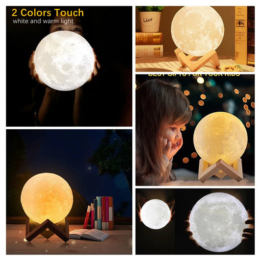 Wiederaufladbare 3D Mondlampe mit LED-Beleuchtung – Touch-funktionale Nachttischlampe für Kinder und Erwachsene, Perfekte Tischlampe für Schlafzimmer Dekoration und Geschenke