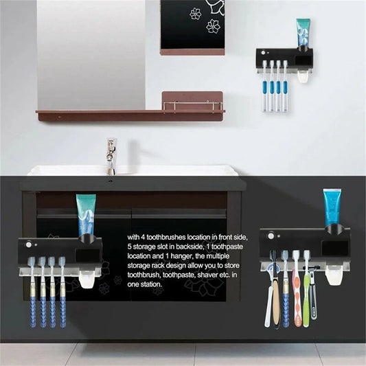 Zahnbürstenhalter mit Solar-UV-Licht zur Zahnbürstensterilisation und automatischem Zahnpastaspender für das Bad, Automatischer Zahnbürstenhaltefür das Bad