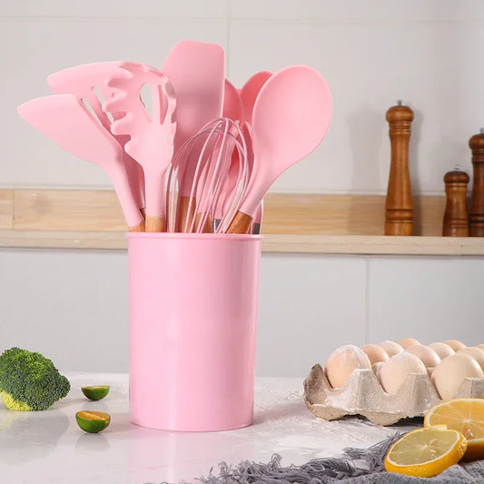 Silikon-Küchenutensilien-Set mit Holzgriff: Antihaft-Kochgeschirr, Spatel, Schaufel, Eierbesen