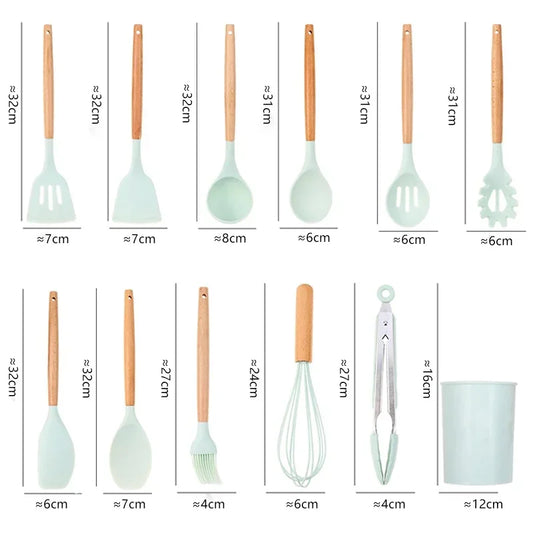 Küchenutensilien-Set aus Silikon: Antihaft-Kochgeschirr mit Holzgriffen, Spatel, Eierquirl, Küchenaccessoires