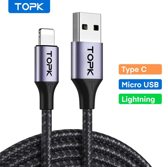 TOPK 3A Type-C & Micro USB Lade- und Datenkabel – Hochgeschwindigkeits-Ladekabel für Xiaomi Redmi Note 10/9, langlebig und leistungsstark