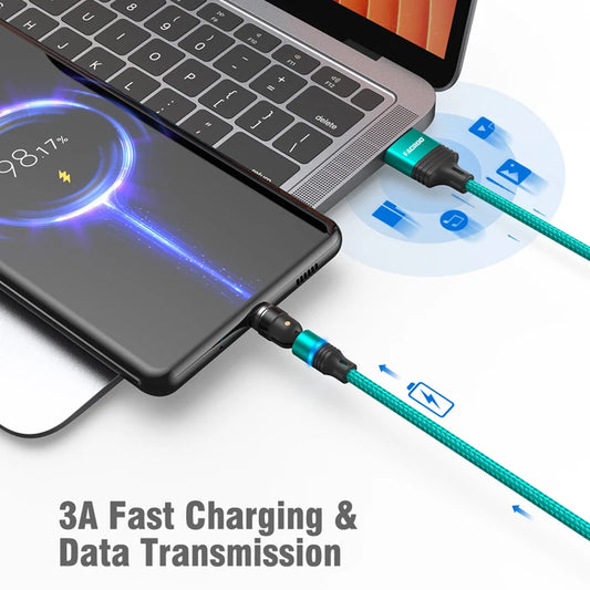 AUFU 540° Drehbarer Magnetisches Kabel – 3A Schnellladekabel, Typ-C und Micro-USB Datenkabel für iPhone 14, Xiaomi, Samsung, Ideal für einfaches und schnelles Aufladen