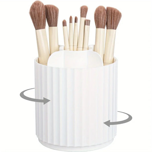 360° Rotierender Make-up Pinselhalter – Kosmetik-Organizer für den Schminktisch, Drehbarer Aufbewahrungsbecher, Weiß Gestreift