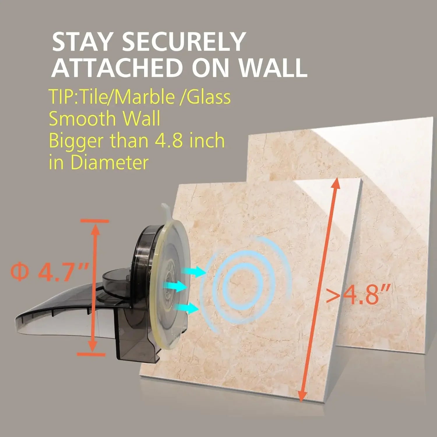 Verbesserte Saugkraft und Stabilität: Die Power-Grip-Saugkappe mit einem Durchmesser von 4,7 Zoll sorgt dafür, dass die Fußstütze sicher an der Wand haftet. Achten Sie darauf, die Stütze nicht über Fugenlinien anzubringen, da dies die Saugkraft verringern kann.
