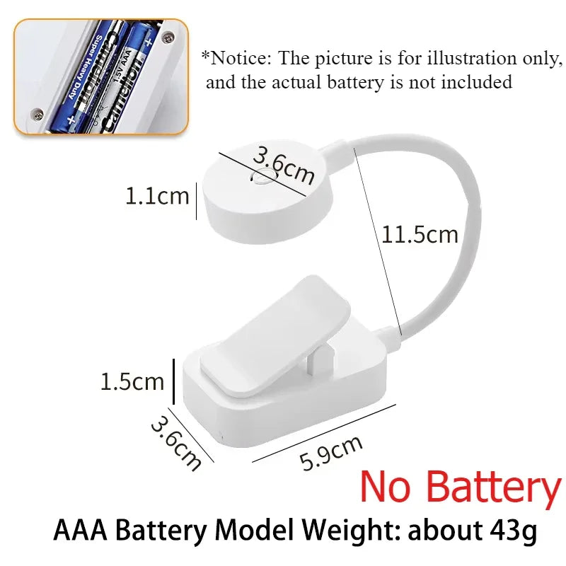 Clip-On Buchlampe –3 Lichtfarben, USB/Batterie, Augenschonend für Lesen im Bett & Lernen, Klemm Leselampe