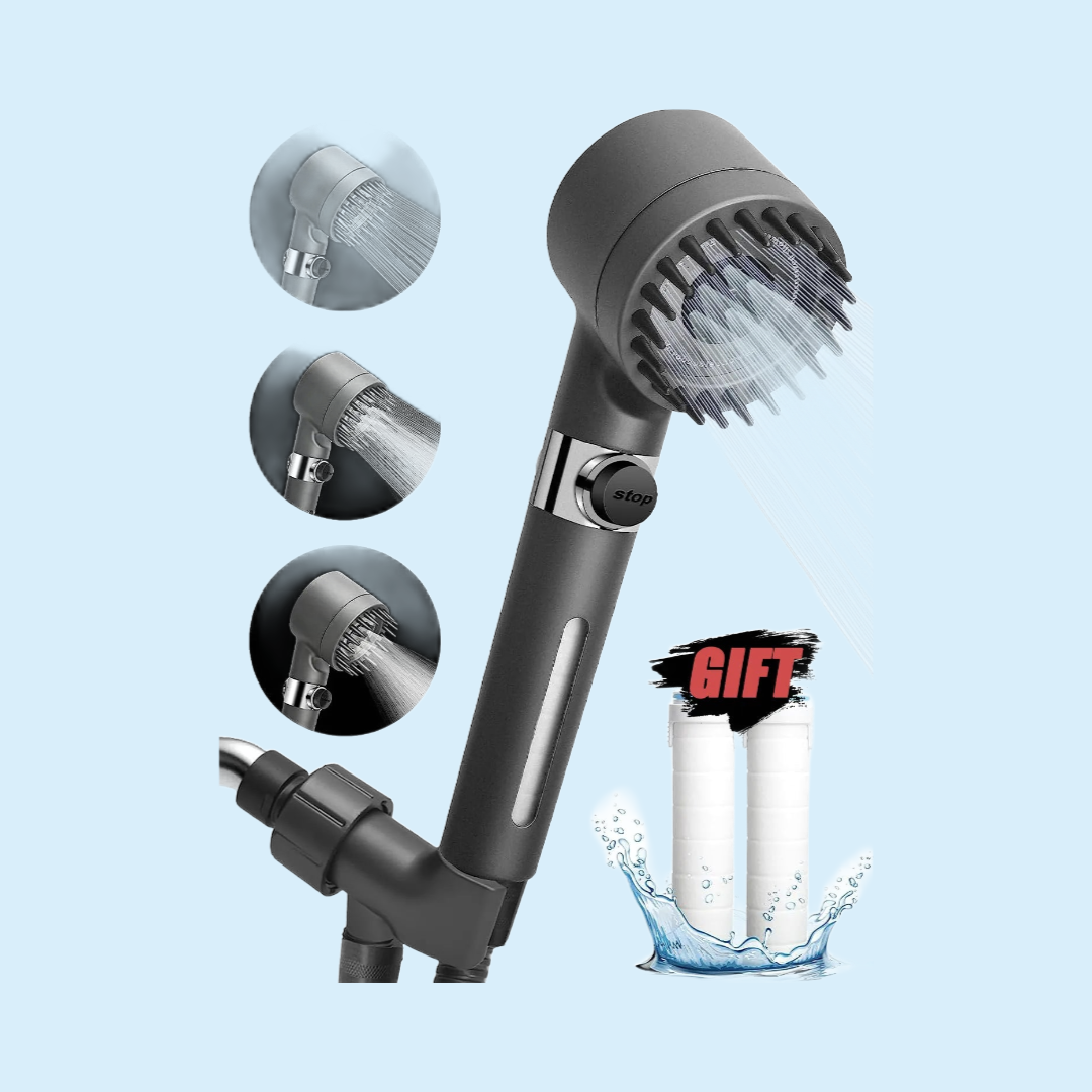 Multifunktionaler Hochdruck-Duschkopf – 3 Modi, einstellbare Sprühintensität, Massagebürste und Filter für ein optimales Duscherlebnis